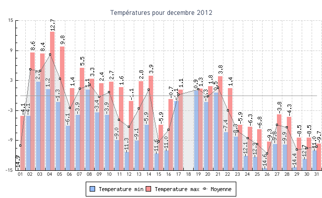 | 31 | -11.0 °C | 0.1 °C | -5.4 °C | 2.8 km/h (18.3 km/h) | S |